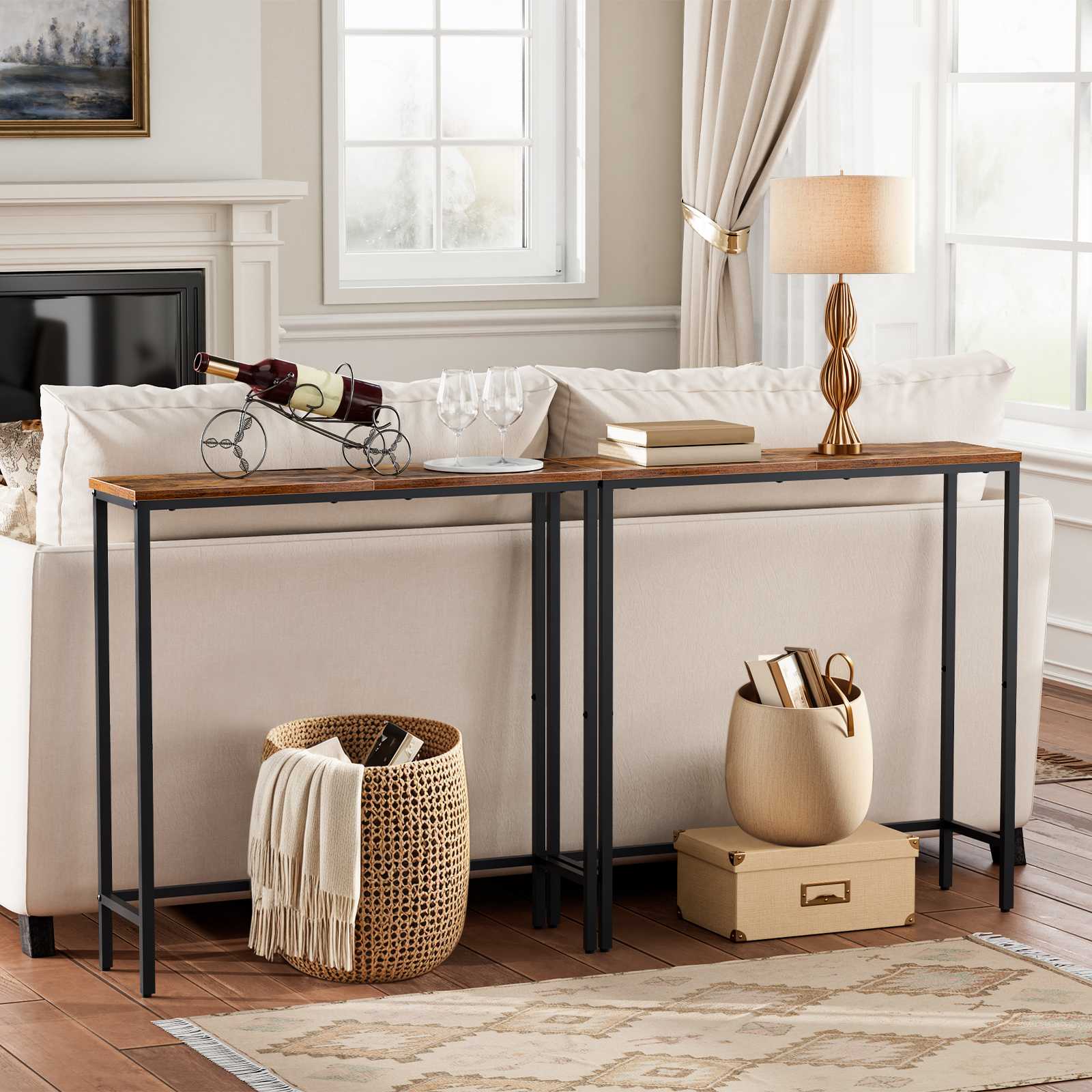 στενό τραπέζι κονσόλας, 29.5" Εισαγωγή μικρού τραπεζιού διαδρόμου για διάδρομο, υπνοδωμάτιο, καθιστικό, φουαγιέ, ρουστίκ καφέ και μαύρο