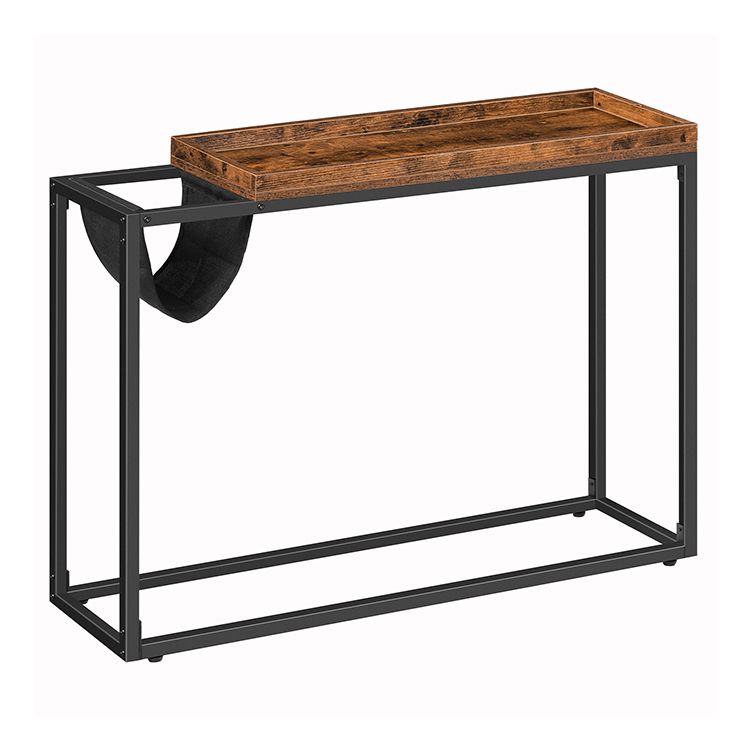 κονσόλας, καναπέ τραπέζι με κάτοχο περιοδικού, Βιομηχανικό τραπέζι εισόδου με ανυψωμένη άκρη και μεταλλικό πλαίσιο, για σαλόνι, είσοδος, δίδρομος, ισχυρός, Εύκολη συναρμολόγηση, ρουστίκ