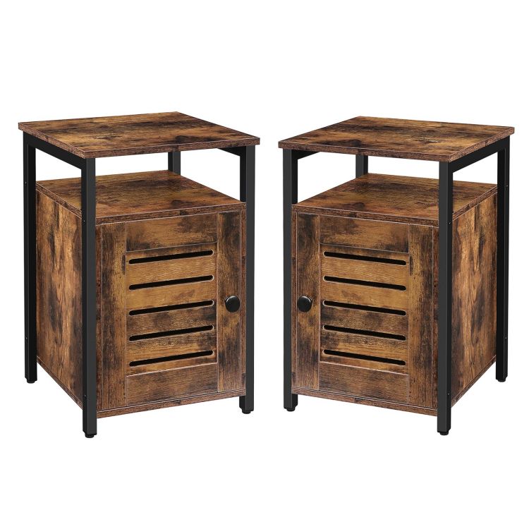 κομοδίνο σετ από 2, shutter end table with switchable door and inner storage, τετράγωνο πλαϊνό τραπέζι, wood accent industrial sofa storage cabinet in bedroom, αίθουσα υποδοχής, rustic brown bf85bzp201