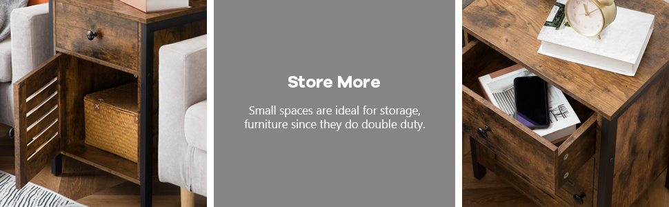 διανυκτέρευση, Τέλος τραπέζι με συρτάρι και ντουλάπι αποθήκευσης, ρετρό βιομηχανικό κομοδίνο με διακόπτη πόρτα, για σπίτι, υπνοδωμάτιο, μεταλλικό πλαίσιο, Εύκολη συναρμολόγηση, ρουστίκ