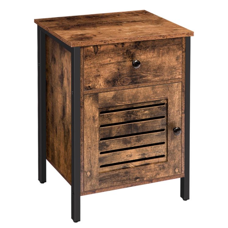 διανυκτέρευση, Τέλος τραπέζι με συρτάρι και ντουλάπι αποθήκευσης, ρετρό βιομηχανικό κομοδίνο με διακόπτη πόρτα, για σπίτι, υπνοδωμάτιο, μεταλλικό πλαίσιο, Εύκολη συναρμολόγηση, rustic brown bf86bz01