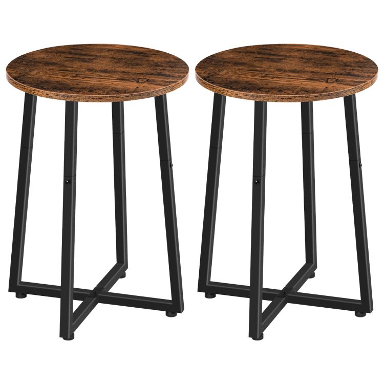 Στρογγυλά πινάκια σετ 2, Στρογγυλά τραπέζια προφοράς με ανθεκτικό μεταλλικό πλαίσιο σχήματος Χ, 15.7" στρογγυλές νυχτερινές, για σαλόνι, υπνοδωμάτιο, μπαλκόνι, Office Rustic Brown