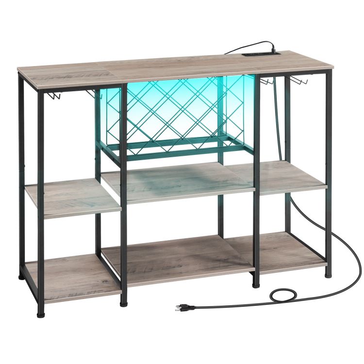 το ντουλάπι μπαρ κρασιού με λυχνίες LED και εξόδους ισχύος, τραπέζι κρασιού για ποτά και γυαλιά, ντουλάπι μπαρ με κρασί, για κουζίνα, τραπεζαρία, Greige και Black