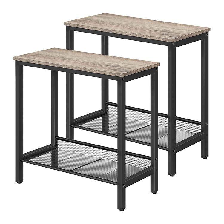 Βοηθητικό τραπέζι, Σετ από 2 Καναπές τελικό τραπέζι, Στενή νυχτερινή περίπτερο με ρυθμιζόμενο ράφι ματιών, Νυχτερινό στρώμα ή γωνιακό για μικρούς χώρους, Σταθερό Μεταλλικό Πλαίσιο, Εύκολη συναρμολόγηση, Ρουστίκ καφέ