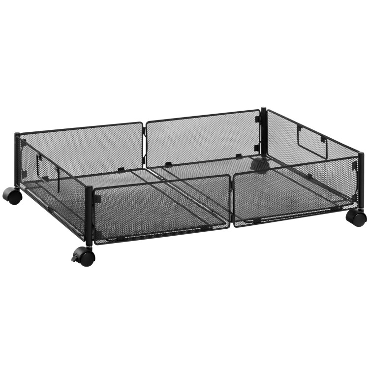 Κάτω από την αποθήκευση κρεβατιού με τροχούς, Κάτω από δοχεία αποθήκευσης κρεβατιού, Μεταλλικό πτυσσόμενο κάτω από το συρτάρι, Εξοικονόμηση χώρου, Συναρμολόγηση χωρίς εργαλεία, για ρούχα, Κουβέρτα, Παπούτσια, Μαύρος