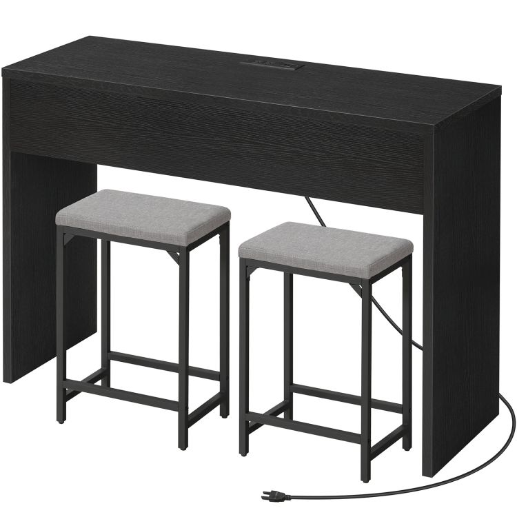 Σετ τραπέζι μπαρ με πρίζα, σετ τραπεζιού και καρέκλας μπαρ, 3-κομμάτι παμπ ύψος τραπέζι με ταπετσαρία σκαμπό του 2, σετ τραπεζαρίας, Στερεό και σταθερό, παχύρρευστα πάνελ ποδιών, μαύρο bk88ubt01