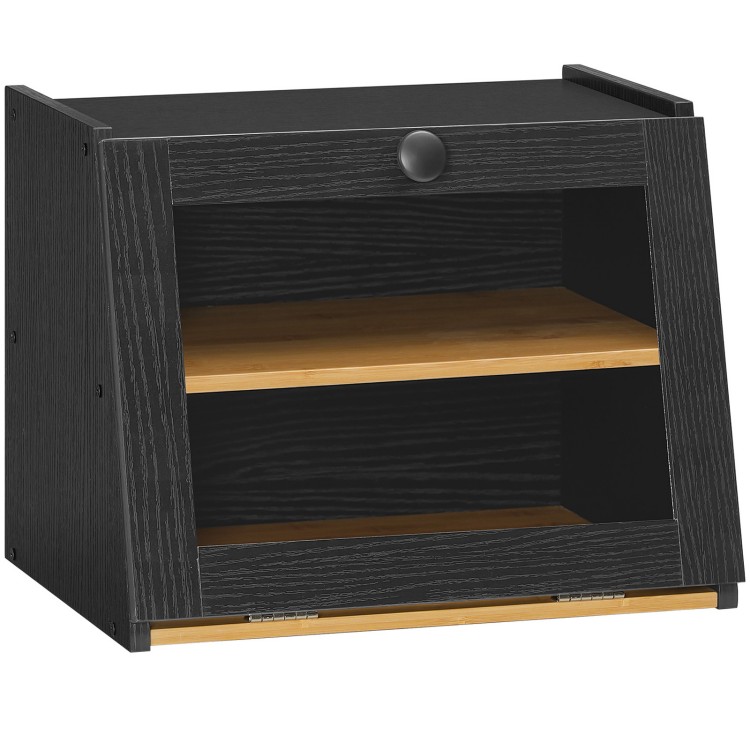Κιβώτιο ψωμιού, Κουτί ψωμιού για πάγκο κουζίνας, Μεγάλη χωρητικότητα δοχείο αποθήκευσης ψωμιού,Ακρυλικό προς τα κάτω., Μπαμπού ράφια, για Κουζίνα, Τραπεζαρία, Αρτοποιείο, Μαύρο και φυσικό
