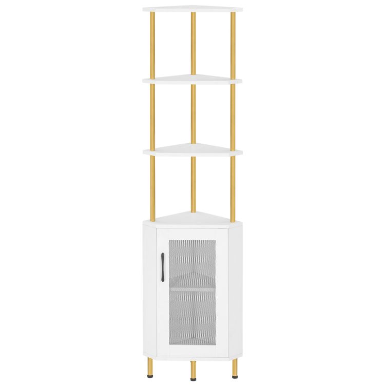 γωνιακό ράφι, 64.8" ψηλό βιομηχανικό γωνιακό ντουλάπι με πόρτες, 5-Βιβλιοθήκη γωνίας Tier, Γωνιακή περίπτερο φυτών ντουλαπιών, Εμφάνιση ράφια ράφι για σαλόνι, white and gold bw164cj01