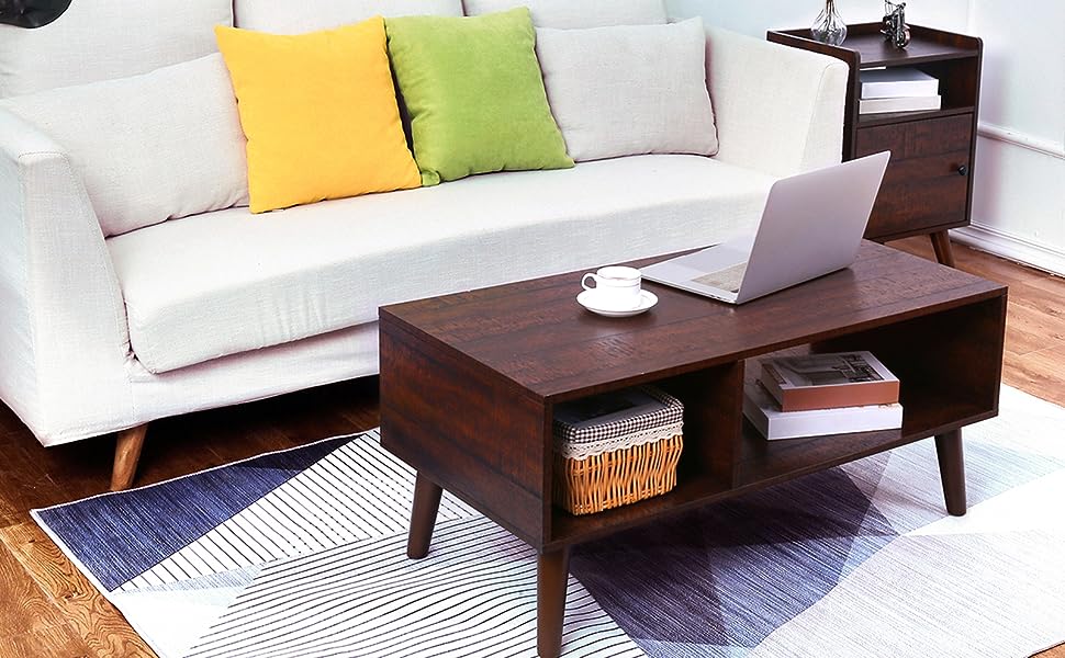 - ανώτερη ποιότητα: coffee table is made of high grade particle board and the canted legs are made of solid rubber wood, it is fixed by screws and wooden pegs. with the durable particleboard frame, this accent table holds up to 120 λίβρα