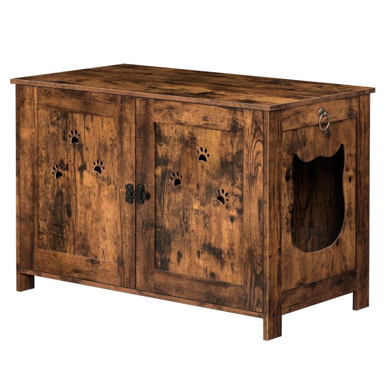 Κρυμμένο περίβλημα κιβωτίων απορριμμάτων γάτας, Ξύλινα έπιπλα ντουλαπιών γάτας, διπλή πόρτα εσωτερικό ψηλό σπιτάκι γάτας με αφαιρούμενο χώρισμα, Εύκολη συναρμολόγηση, για σαλόνι, υπνοδωμάτιο, ρουστίκ καφέ cwhr6801