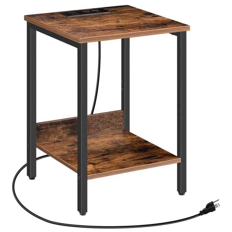 βοηθητικό τραπέζι με σταθμό φόρτισης, 19.9’’ nightstand, 2-τραπέζι τελικού βαθμού, βιομηχανικό τραπέζι, Εύκολη συναρμολόγηση, για σαλόνι, υπνοδωμάτιο, διάδρομος, είσοδος, rustic brown ethr51e01