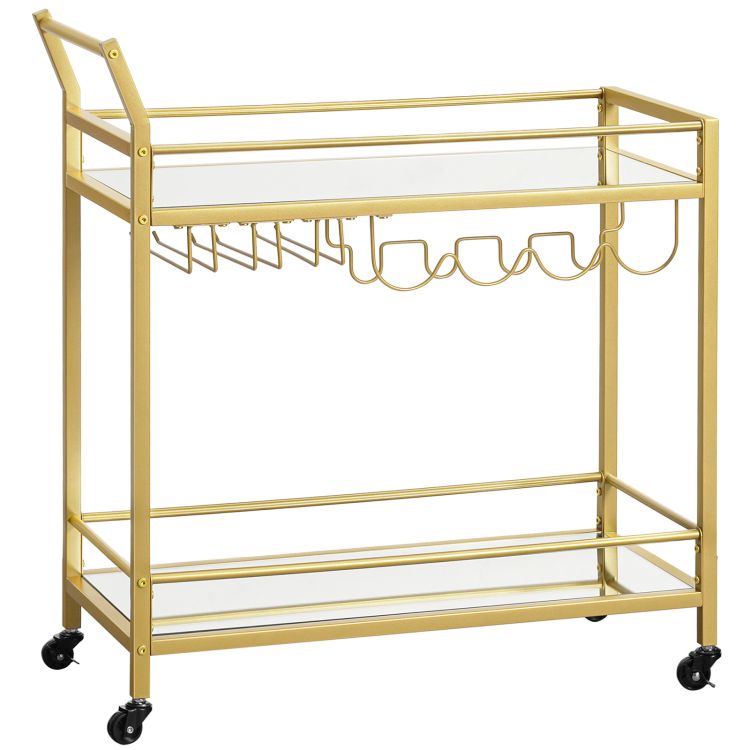- μετακινηθείτε ή σταθείτε, do it freely: this gold serving cart is equipped with 4 ροδάκια, so you can move it anywhere you need and use it any time as a sweet steward. 2 lockable castors can position this bar trolley quietly and stably upon actual needs. a family drink or a club party, this bar cart can serve you well