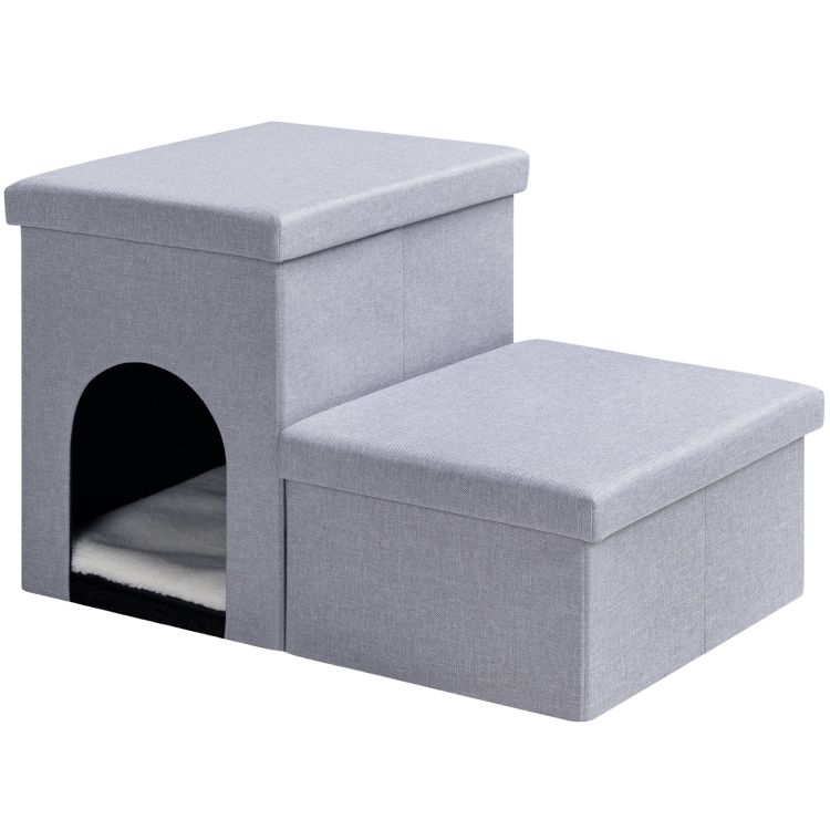 Σκάλες σκύλου με αποθήκευση, Πτυσσόμενα σκαλοπάτια σκύλου για ψηλό κρεβάτι ή καναπέ, 22" L x 15.8" W x 15" H, Σκάλες για κατοικίδια με Pet House, για μικρά σκυλιά, Υπομονή μέχρι 150 λίβρες, 2 Βήματα, Gray GY02PT03