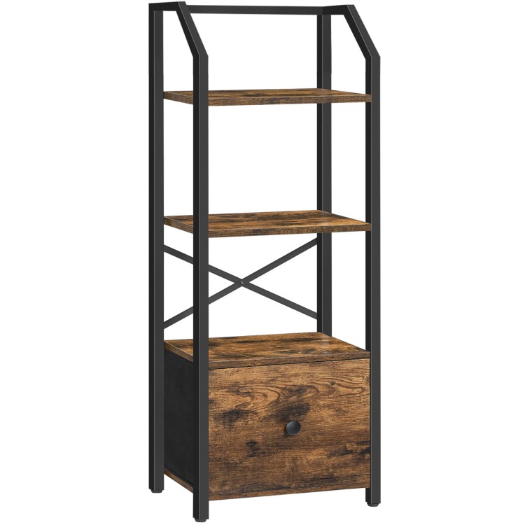 4 ράφι βιβλιοθήκης, Κάντε κράτηση ράφι με αφαιρούμενο συρτάρι, ψηλή στενή βιβλιοθήκη με ράφια, Μόνιμο ράφι οθόνης, διοργανωτής αποθήκευσης, για υπνοδωμάτιο, γραφείο στο σπίτι, ρουστίκ καφέ και μαύρο