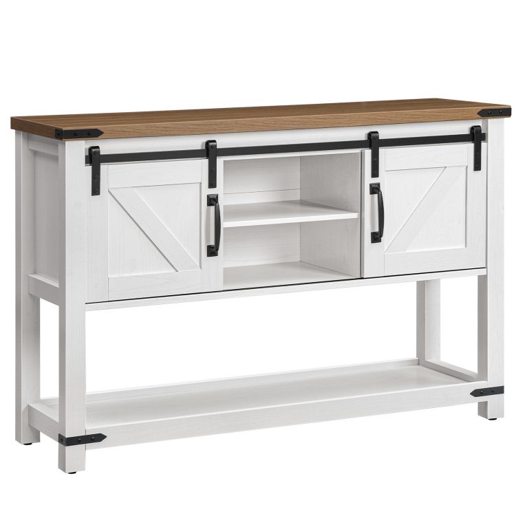 46" Πίνακας εισόδου αγροικίας με αποθήκευση, στενό τραπέζι της κονσόλας με ανοιχτά ράφια και 2 ντουλάπια, καναπέ τραπέζι με συρόμενες πόρτες αχυρώνα, για διάδρομο, καθιστικό, white and walnut wh17xg01