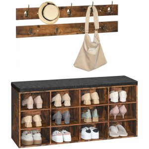 • HOOBRO Panca Scarpiera, 100 x 30 x 48 cm, Panca Contenitore con Scomparti Aperti, Portaoggetti, Seduta Imbottita, Stabile, per Ingresso, Corridoio, Camera da Letto,Marrone Vintage EBF112HX01G1
