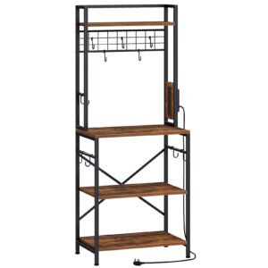 • HOOBRO KItchen Storage Rack, Baker's Rack with Power Outlet, Coffee Station with 11 S-Shaped Hooks, Microwave Stand, for Kitchen, Dining Room, Study, Rustic Brown and Black EBF67KHB01