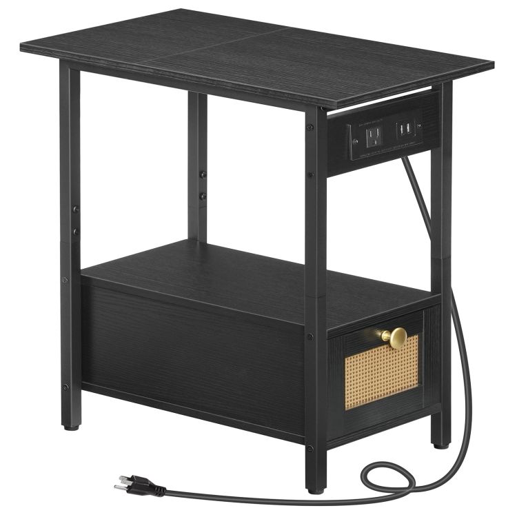 mesa auxiliar con estación de carga, Mesa lateral estrecha con cajones y puertos USB & enchufes de electricidad, mesas de noche de mesas de noche para espacios pequeños, dormitorio, sala de estar, black bb37ubz01