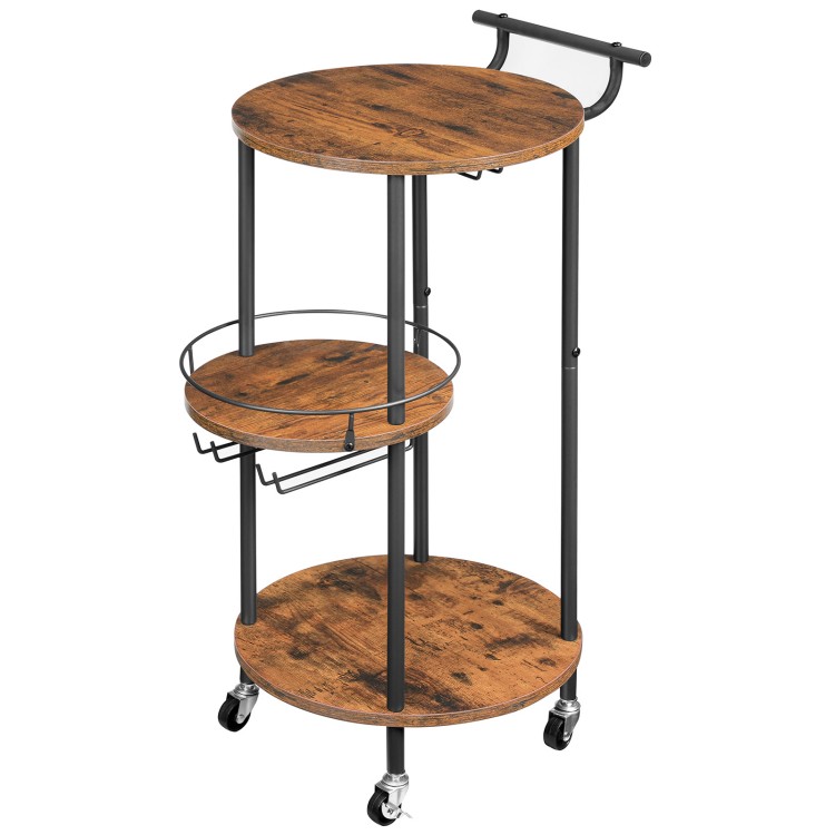 Carros de bar con estantes de almacenamiento de 3 niveles, Carro de servicio de barra móvil con botellero y soporte para copas, para el hogar, Cocina, Sala de estar, Comedor, Rustic Brown BF32TC01