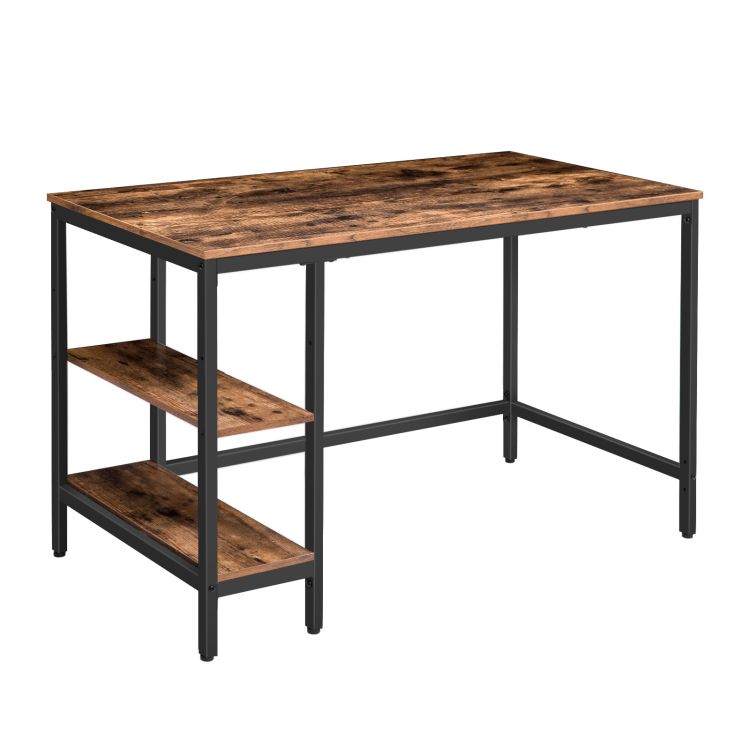 escritorio de la computadora, 47.2 Escritorio de escritura de pulgadas con estante ajustable a la izquierda o hacia la derecha, Descripción de estudio de la oficina para la computadora portátil, marco de metal resistente, para la oficina en casa, ensamblaje fácil, marrón rústico y negro