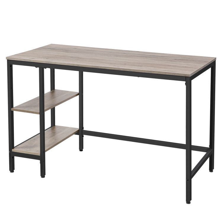 cuando eliges un escritorio de alta calidad, puedes hacer tu trabajo con facilidad y alegría. Este escritorio para computadora está hecho de madera rústica de color gris con una estructura de metal resistente.. si estas trabajando, jugando o estudiando aquí, este escritorio te acompañará perfectamente.