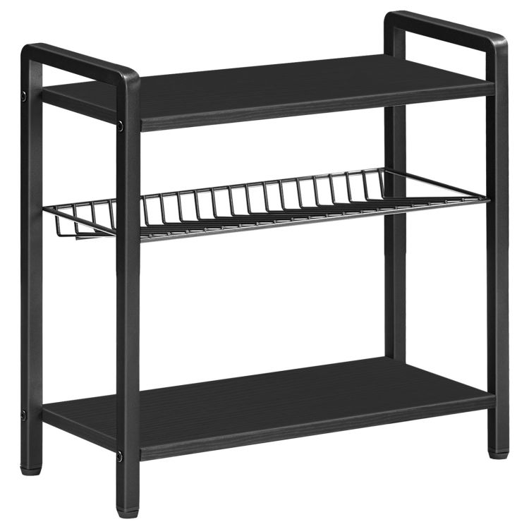 3-organizador de estante de especias de nivel, estante de mostrador de cocina, Pastel de almacenamiento de encimera con estante de malla inclinada, Estante organizador del gabinete para la cocina, oficina, sala de estudio, negro bk03tl01