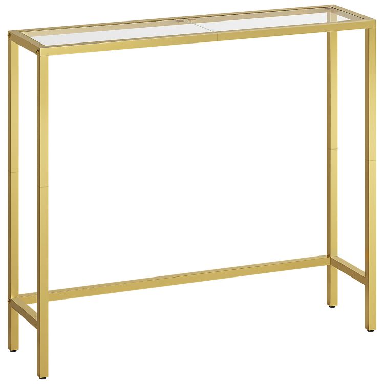 29.5" Mesa consola estrecha, Mesa de sofá de vidrio templado, Mesa auxiliar pequeña, Mesa de entrada moderna, para entrada, Sala de estar, Vestíbulo, dormitorio del pasillo, Oro GD71XG01
