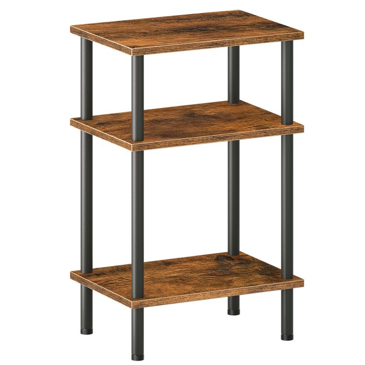 loppupöytä, 3-kerros korkea sivupöytä, yöpöytä pieneen tilaan, Makuuhuoneen pöydän vieressä, sohvapöytä olohuoneeseen, teollisuustyyli, vakaa kehys, Helppo kokoonpano maalaismainen ruskea