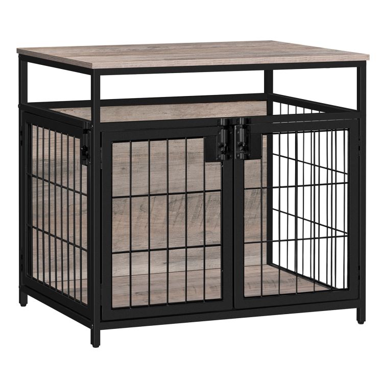 - open doors on both sides: the furniture-style dog crate, multiple entrances and a latch on the top make the dogs more convenient to enter and exit. you can open one of the doors according to the location of the dog furniture. above the dog kennel, large panel will be a great place to store dog toys or add a pot of green plants, or put some magazines, and a cup of coffee to create a side table for afternoon tea