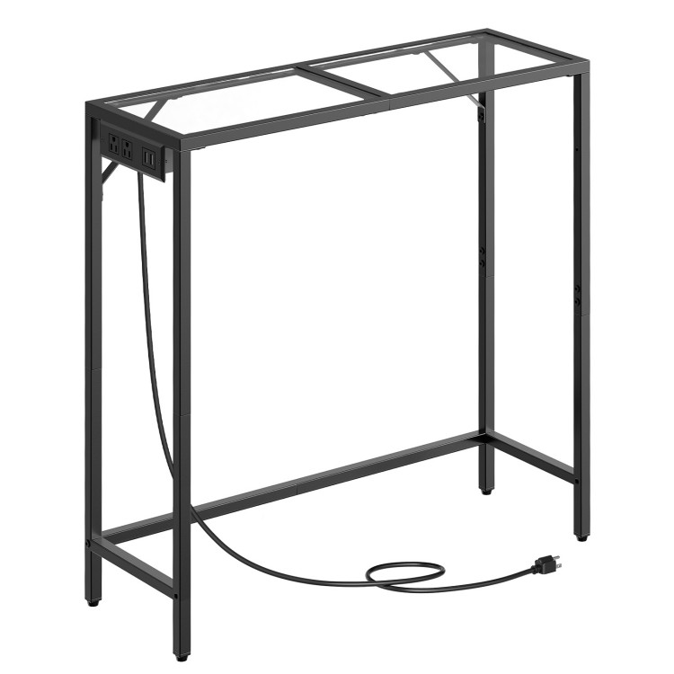 Konsolipöytä latausasemalla, 27" Kapea sohvapöydän takana, Karkaistu lasi -sisäänkäyntipöytä metallikehyksellä, Säädettävät jalat, Moderni Tyyli, Sisäänkäyntiä varten, Olohuone, Musta