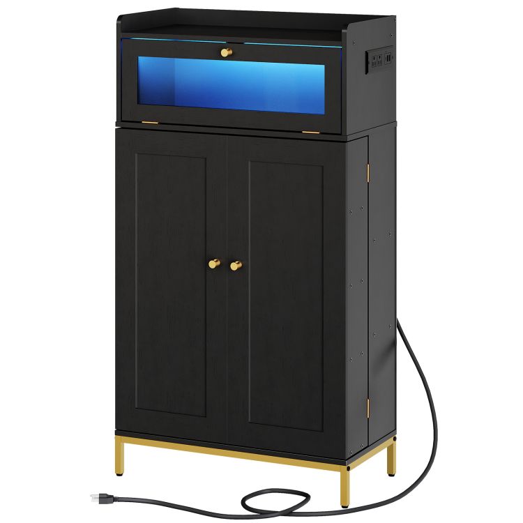 - feature-rich for various needs: this storage cabinet comes with a multi-port socket for charging multiple e-devices. the 16-color led strip with transparent acrylic drawer door creates unique lighting effects for you to enjoy a cozy home atmosphere