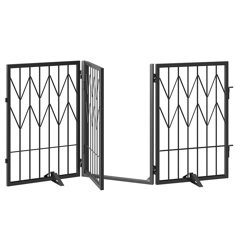 - moni-kohtaus joustavuus: Tämä koira -aita sisätiloissa on 3 Metallipaneelit, jotka on joustavasti kytketty 360 asteen pyörivällä saranoilla. se on helposti muodossa z-muotoinen, U-muotoinen, suorakulmainen, tai kuusikulmaiset tilat tavata, monipuoliset tarpeet, Se toimii sekä lemmikkieläinten oven porttina että näytelmänä & Harjoittele koiran leikkiä, sopeutuminen oviaukkoihin, käytävät, portaat, tai muut aukot