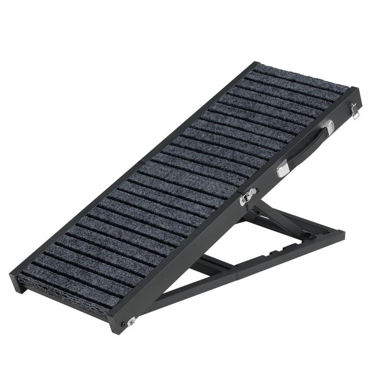 koiranramppi sänkyyn, Kannettava lemmikkiramppi pienille koirille, joilla ei liukuta mattopinta,, säädettävissä 10.6" to 20.9", Taitettava lemmikkiportaat ramppi kuorma -autosta sohvamaastoauto, musta ja harmaa