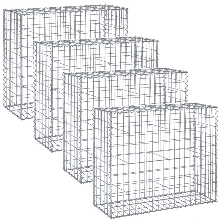 Gabion -sarja 4 Kivikorit, 100 x 30 x 95 cm, Mesh 10 x 5 cm, Sinkitystä teräksestä tehty puutarhakoristelu, Hopea välikappaleilla