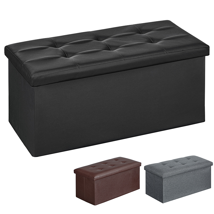29.9 Inchs Banc ottoman de rangement pliant des pouces, banc de chambre avec rangement, Ottoman de stockage avec dessus rembourré, pour le salon, chambre à coucher, entrée, étude, bureau, noir