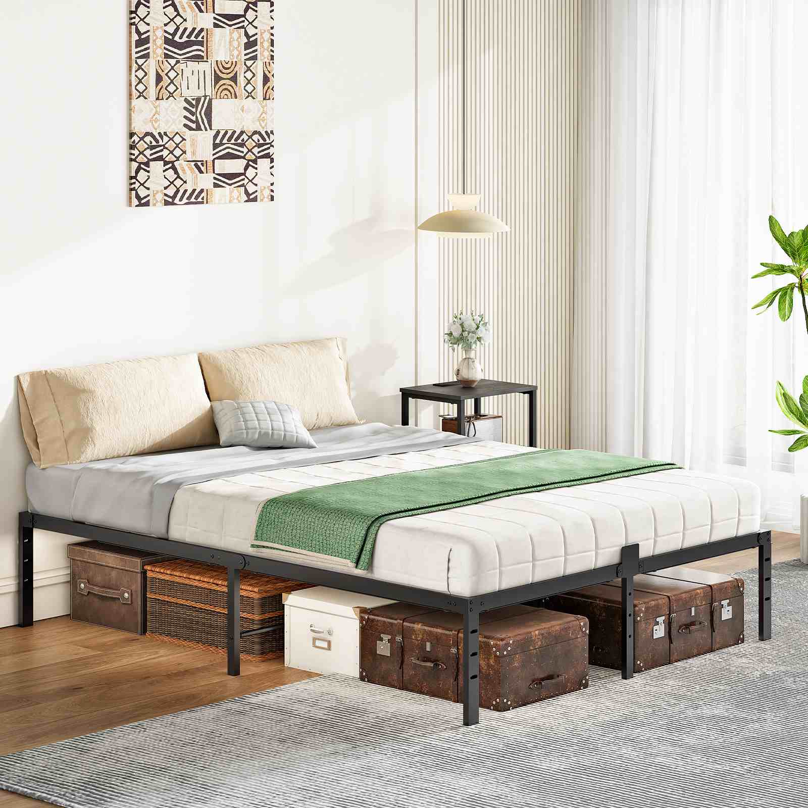 - Solide et stable: Ce cadre de lit double est doté de barres et de pieds métalliques améliorés, résister à l'épreuve du temps. Des barres métalliques renforcées robustes avec des matériaux plus épais assurent la stabilité et la capacité de charge, Créer un espace de sommeil rassurant pour vous