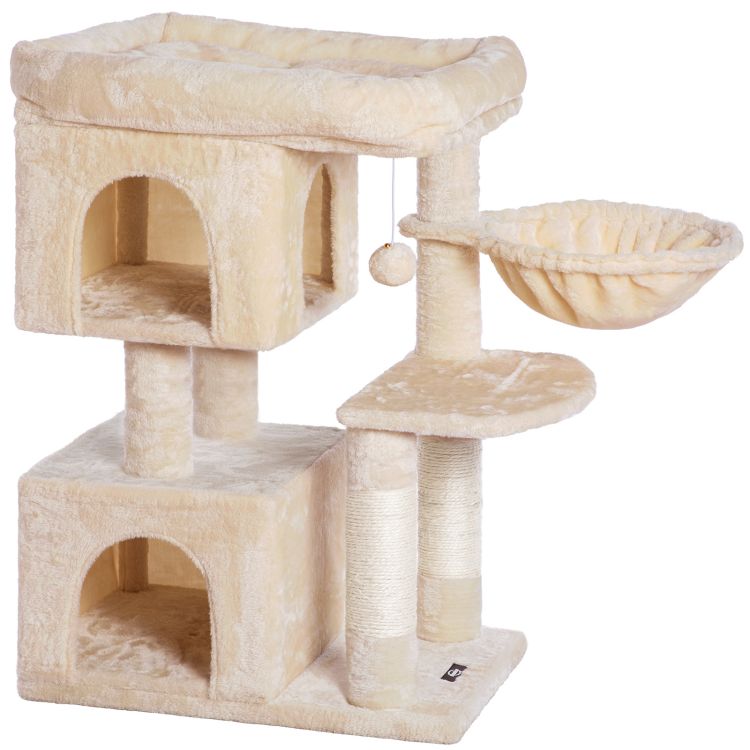 arbre à chat pour grands chats, tour de chat avec 2 Condos en peluche et poteaux de grattage de sisal, arbre d'activité de chat, Libérez la nature des chats, Maison stable avec kit anti-toppling, beige be03sct03