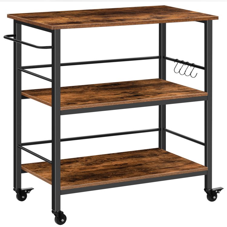 îlot de cuisine avec rangement,comptoir de cuisine industriel avec crochets et enclos latéraux, 3 tier kitchen cart with large workstation, gain de place, assemblage facile, rustic brown and black bf03zd01