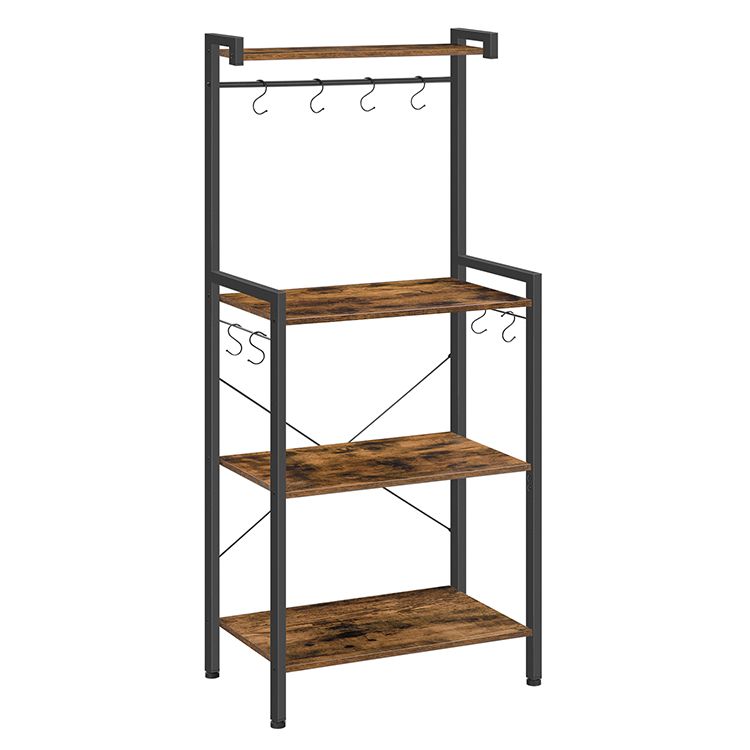 Rack de boulangers pour étagère de cuisine avec rangement, 4 stand à micro-ondes de niveau, Rack de boulanger multifonctionnel avec 8 crochets, étagère de rangement de cuisine en bois, cadre métallique stable, assemblage facile, marron rustique