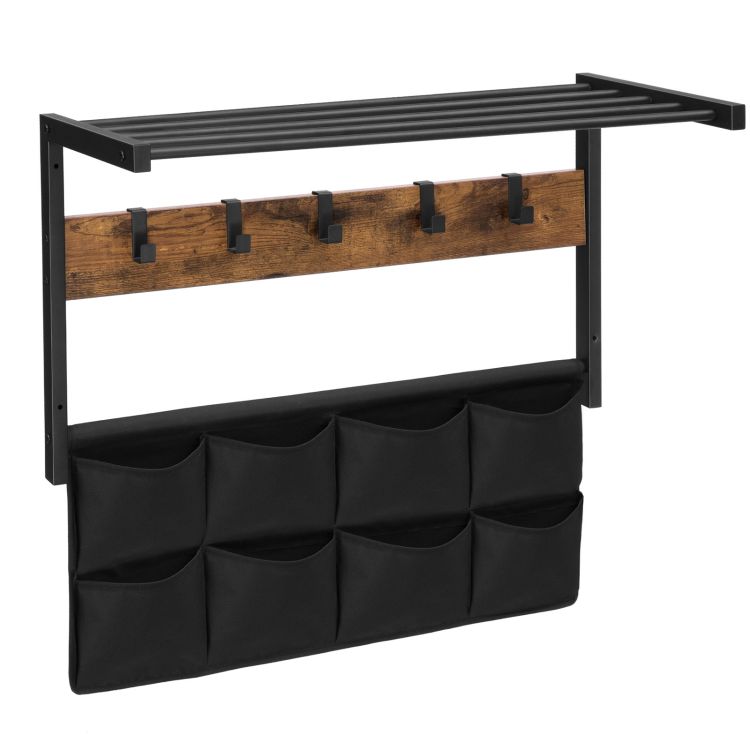 portemanteau mural, support d'entrée de rack de crochet mural avec 5 crochets mobiles et 8 sacs de rangement, pour l'entrée, salle de bain, salon, style industriel, solide et stable