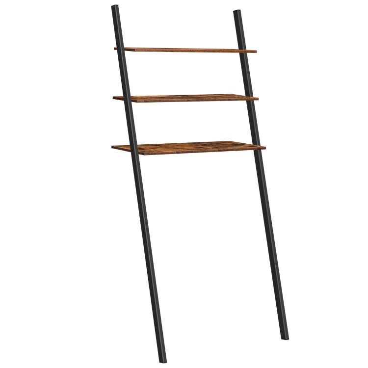 étagère échelle, 3-niveau sur le rangement des toilettes, 26.4étagères de stand de fleurs de la plante industrielle, Rack de rangement penchée à la salle de bain, Buanderie, cadre métallique, marron rustique