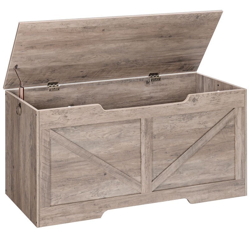 Banc de rangement HOOBRO, 43.3" Coffre de rangement rétro en bois avec poignée découpée en forme de U, Charnière de sécurité, Les soutiens 220 lb et assemblage facile pour organisateur de coffre à jouets (Gris)