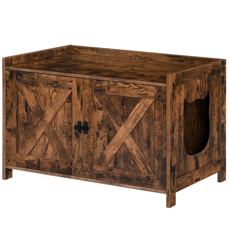 enclos pour bac à litière pour chat, Meubles de litière cachés avec un diviseur, meubles de salle de lavabo en bois, maison de chat d'intérieur, fin de table, table de nuit, Montez la majeure partie de la litière, rustic brown cwhr8001v