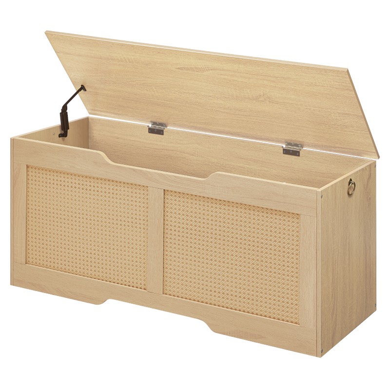 Banc de rangement HOOBRO, 43.3" Coffre à jouets, Coffre de rangement en rotin, Supports de banc d'entrée robustes 220 kg, Coffre à jouets, Charnière de sécurité, Ouverture en forme de U, Assemblage facile, Naturel