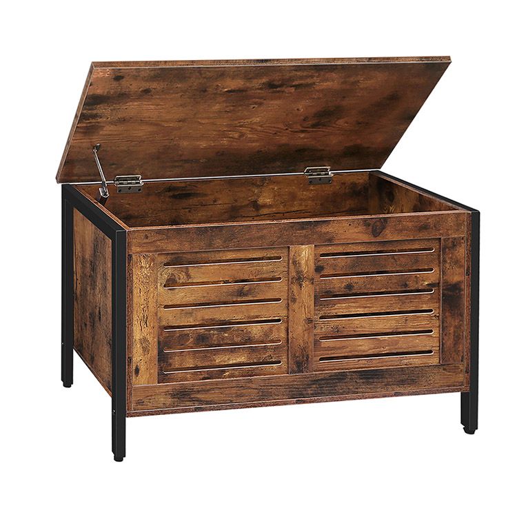 Cófra Stórála, Cófra bréagán adhmaid, Eagraí Bosca Bréagáin Retro le Hinge Sábháilteachta, Binse stórála láidir, Fráma Miotail, Tacaíochtaí 220 lb, Doras Louvered, Donn Rustach