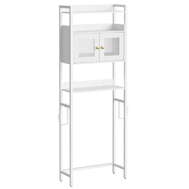 - comprehensive storage solutions: this over toilet storage rack features 3 seilfeanna oscailte, 1 cabinet with doors, agus 2 toilet paper hooks, providing a variety of storage spaces to help you easily organize daily bathroom items while maintaining privacy