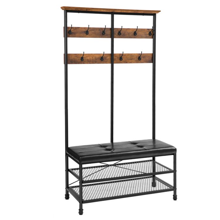 - thickened padded seat: the thickened soft seat of the hall tree is the most supportive warm when you remove shoes. plusz, composed of metal frame, this coat rack shoe bench is solidly built. weight limit of shoe bench: 220 lb, per hook: 6.6 lb