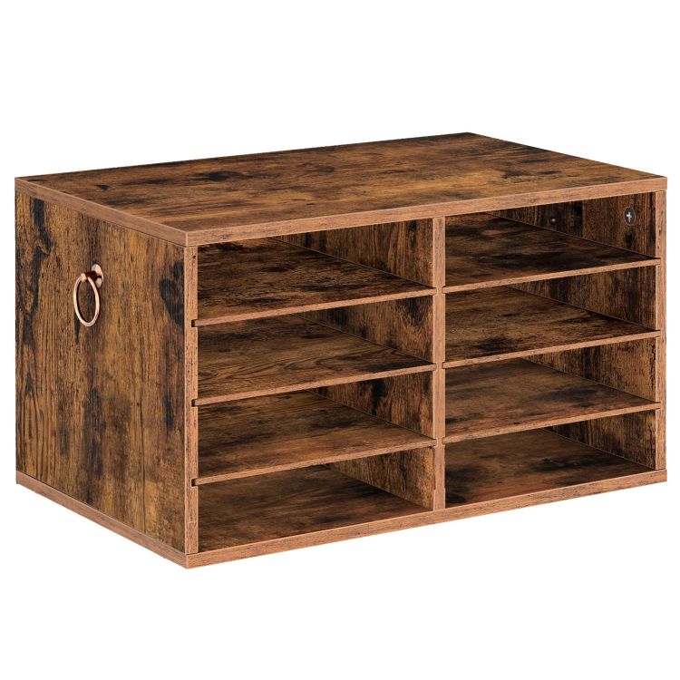 - vintage simplicity, stylish decoration: i wear a rustic suit and have a simple structure with two rows of 8 partitions design. the spacious top can put beautiful artwork while the wood pattern and smooth finish enable me to decorate your home. without hesitation, i will be your important file management expert in your work or life