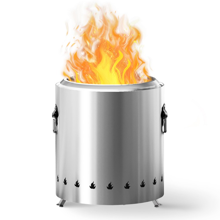 smokeless fire pit, stainless steel firepit with stand, Faégető kandallók cserélhető hamu serpenyővel, portable outdoor firepit for outside patio camping with carry bag, silver hl02sv