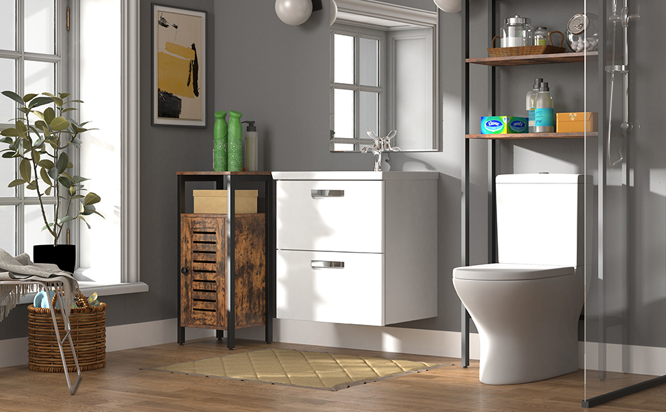 Mobiletto del bagno, Mobile Portaoggetti con Ante e Ripiani Regolabili in Altezza, Mobile laterale industriale, Mobile da terra, Multifunzionale per il bagno, Soggiorno, Studio, Cucina